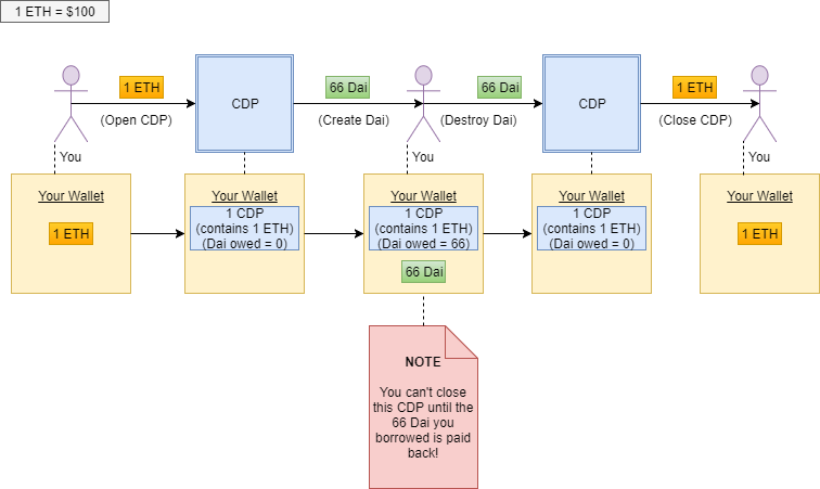 open – initialize CDPlock – lock up collateraldraw – issue Daifree – reclaim collateralwipe – send back Dai (reduce issuance)shut – close CDPgive – transfer CDP to another ownerbite – trigger liquidation / apply penaltygrab – receive CDP’s collateral while in liquidation